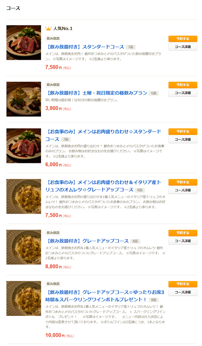 Two standout courses dominate the offering: the Standard Course and the Grade-Up Course. The Standard Course is a well-rounded selection, perfect for those who enjoy a balanced dining experience. For a more elevated experience, the Grade-Up Course comes with additional perks, such as a 3-hour seating time and a special gift of a bottle of sparkling wine, adding an extra touch of luxury to the meal.